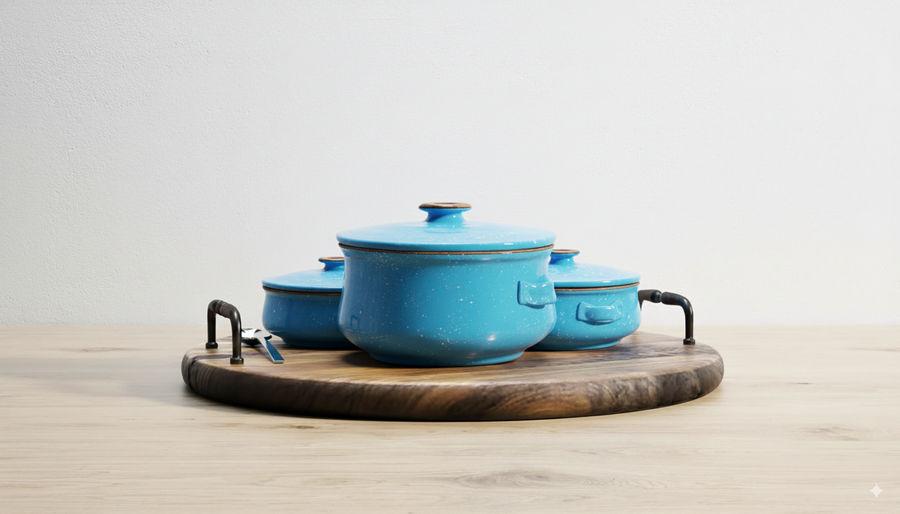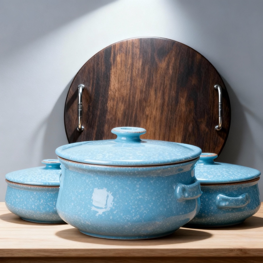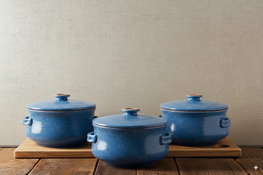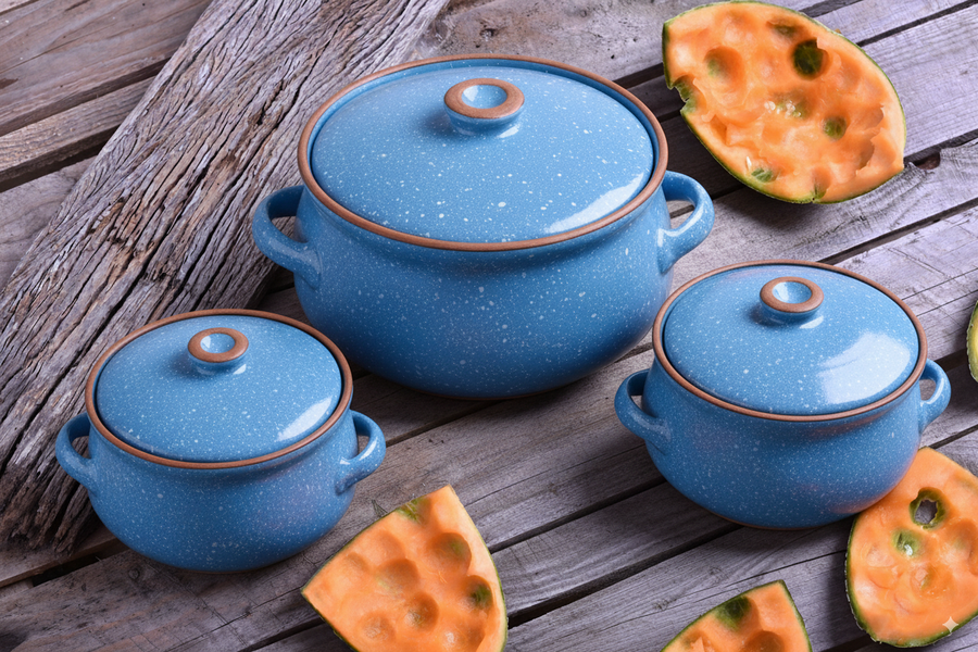 وكل حلة مزودة بغطاء فخار متين يحافظ على جودة الطهي.