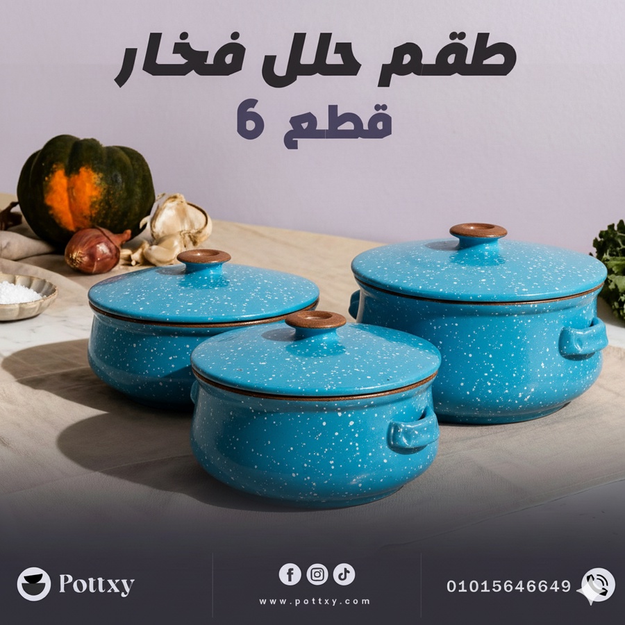 طقم متكامل من 6 قطع ( 3 حلل فخارية + 3 غطاء)