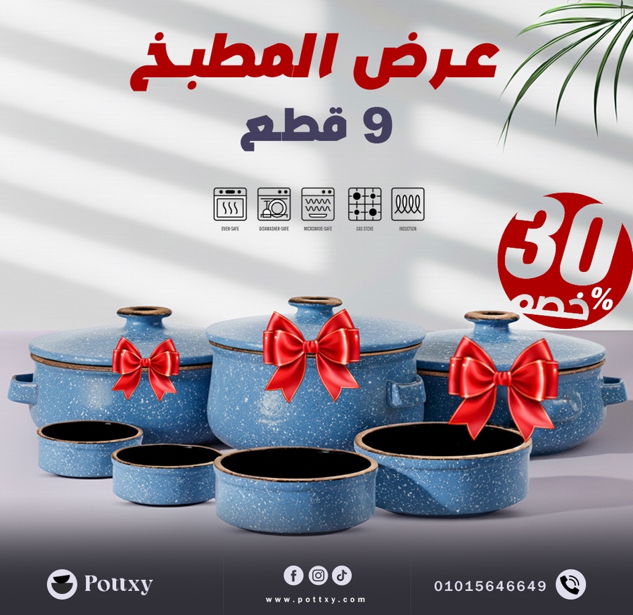 ج.ماستمتع بتجربة الطهي الأصيلة مع عرض 9 قطع من الحلل والطواجن الفخارية المصنوعة بعناية من أجود أنواع الطين الطبيعي. هذه المجموعة المتكاملة تمنح مطبخك لمسة من التراث المصري الأصيل، مع جودة عالية تجمع بين المتانة، الجمال، والقدرة الفائقة على الاحتفاظ بالحرارة.