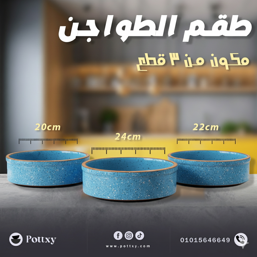 🍲 طقم طواجن فخار مطلي بشكل الجرانيت – 3 قطع